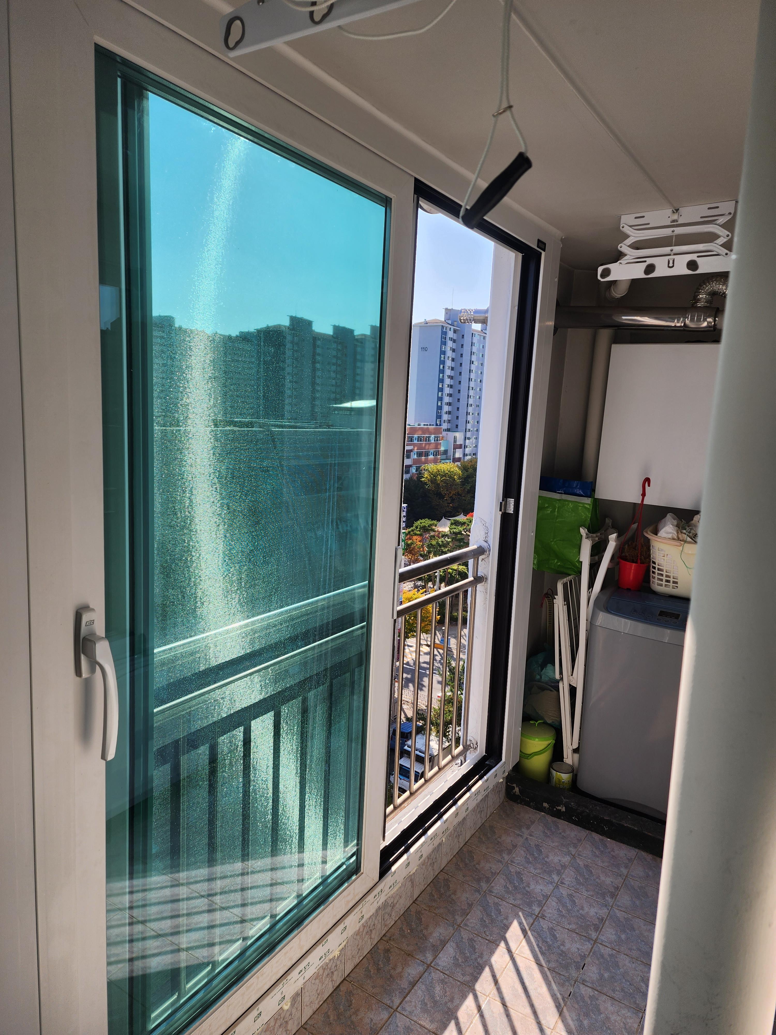 제품은 발코니 전용창인 뉴프라임140제품과 로이복층유리 26mm가 적용되었습니다.