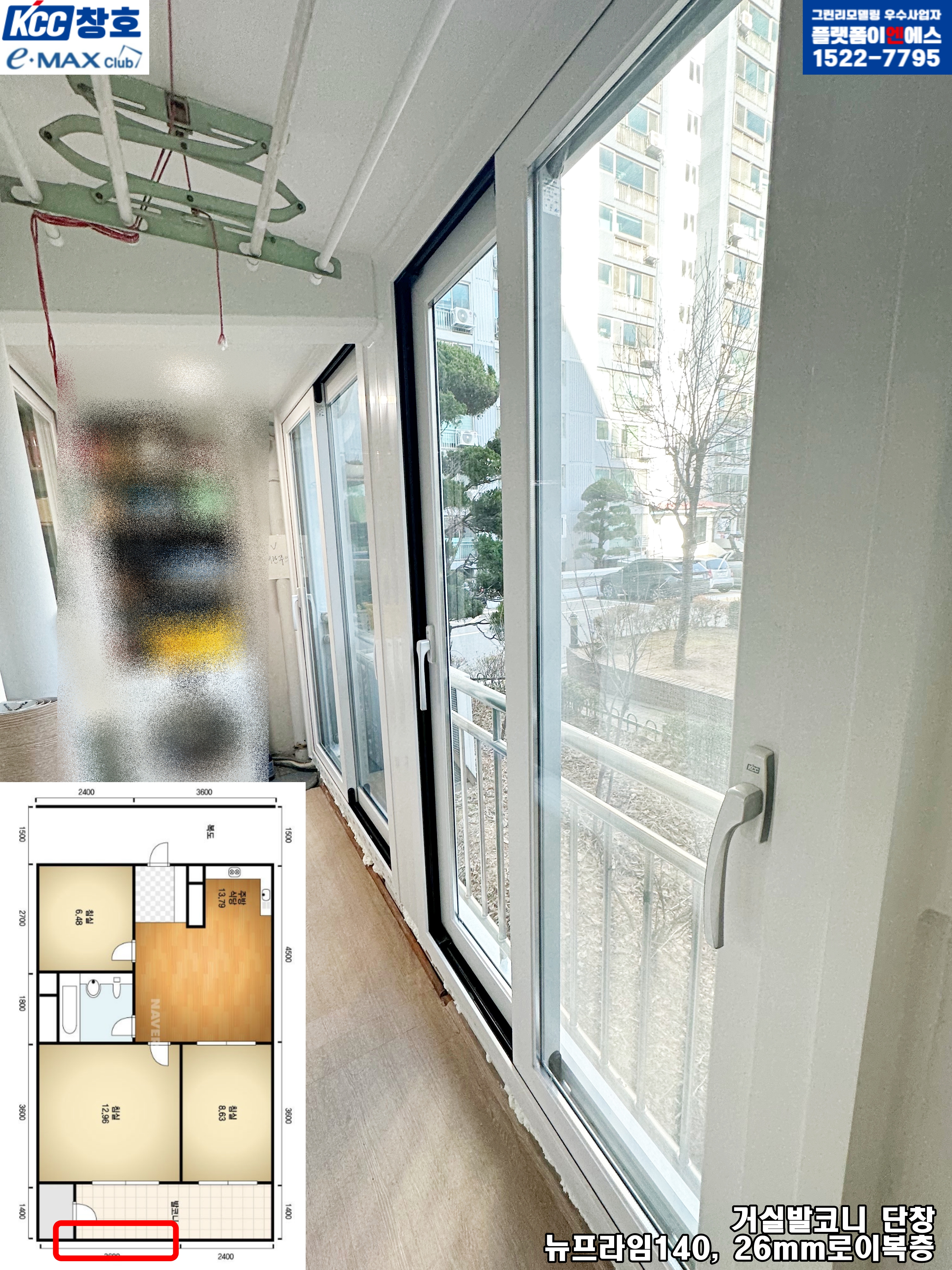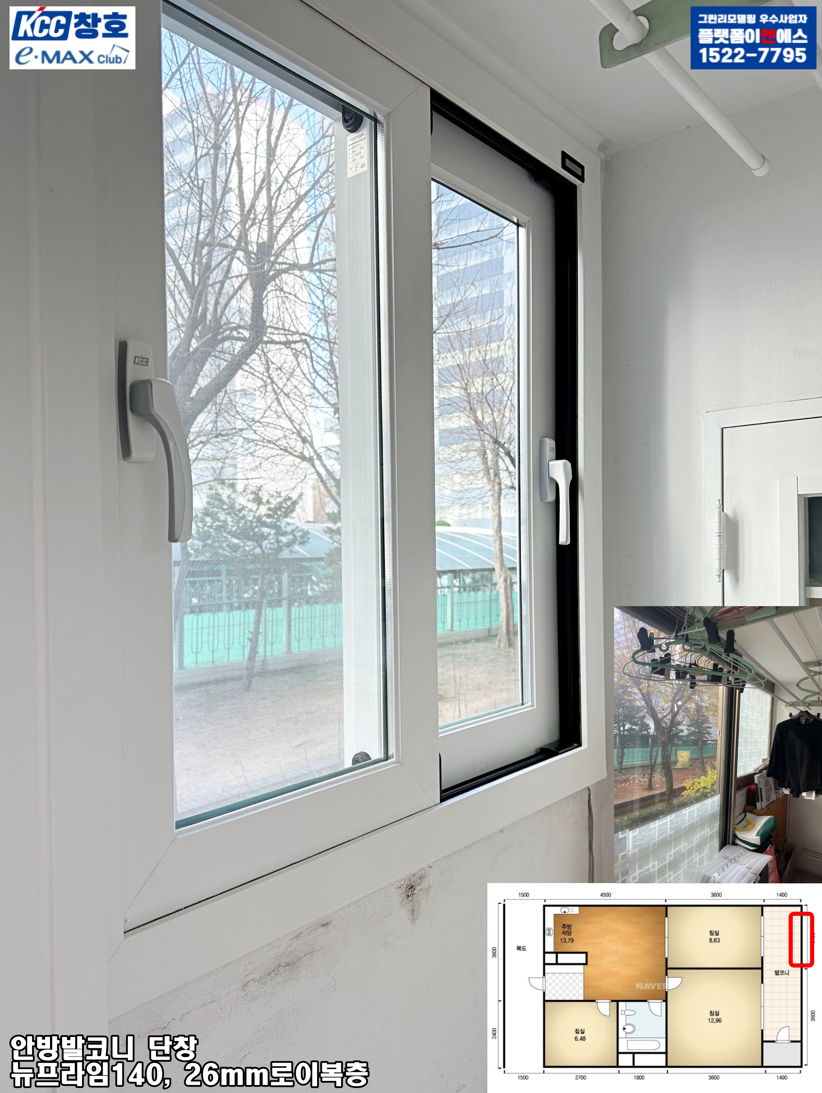 1. 외부 발코니창 교체 : 시공제품 뉴프라임140, 로이26mm복층유리