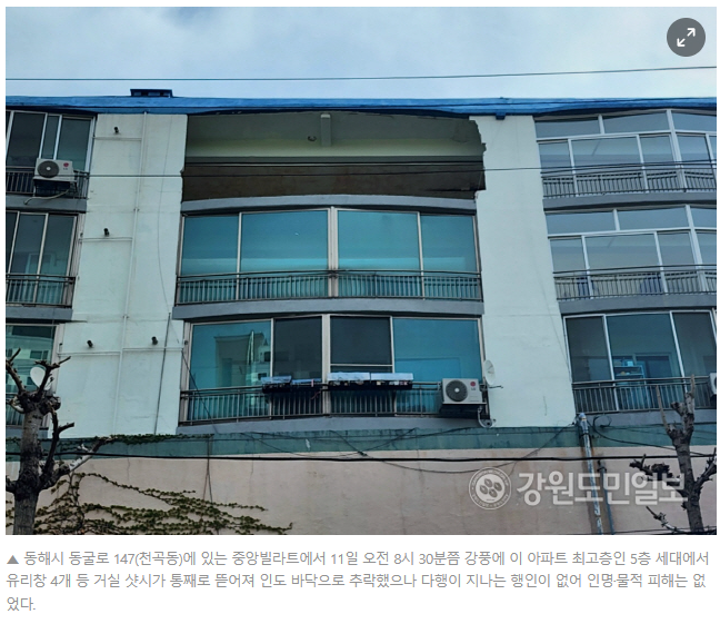 위 사진은 창틀 자체가 고정이 약했고 강풍으로 인해 틀 자체가 빠져나간 사례인데요. 위와 같이 노후도가 심한 경우에는 하루빨리 창호를 교체하시는게 답입니다.