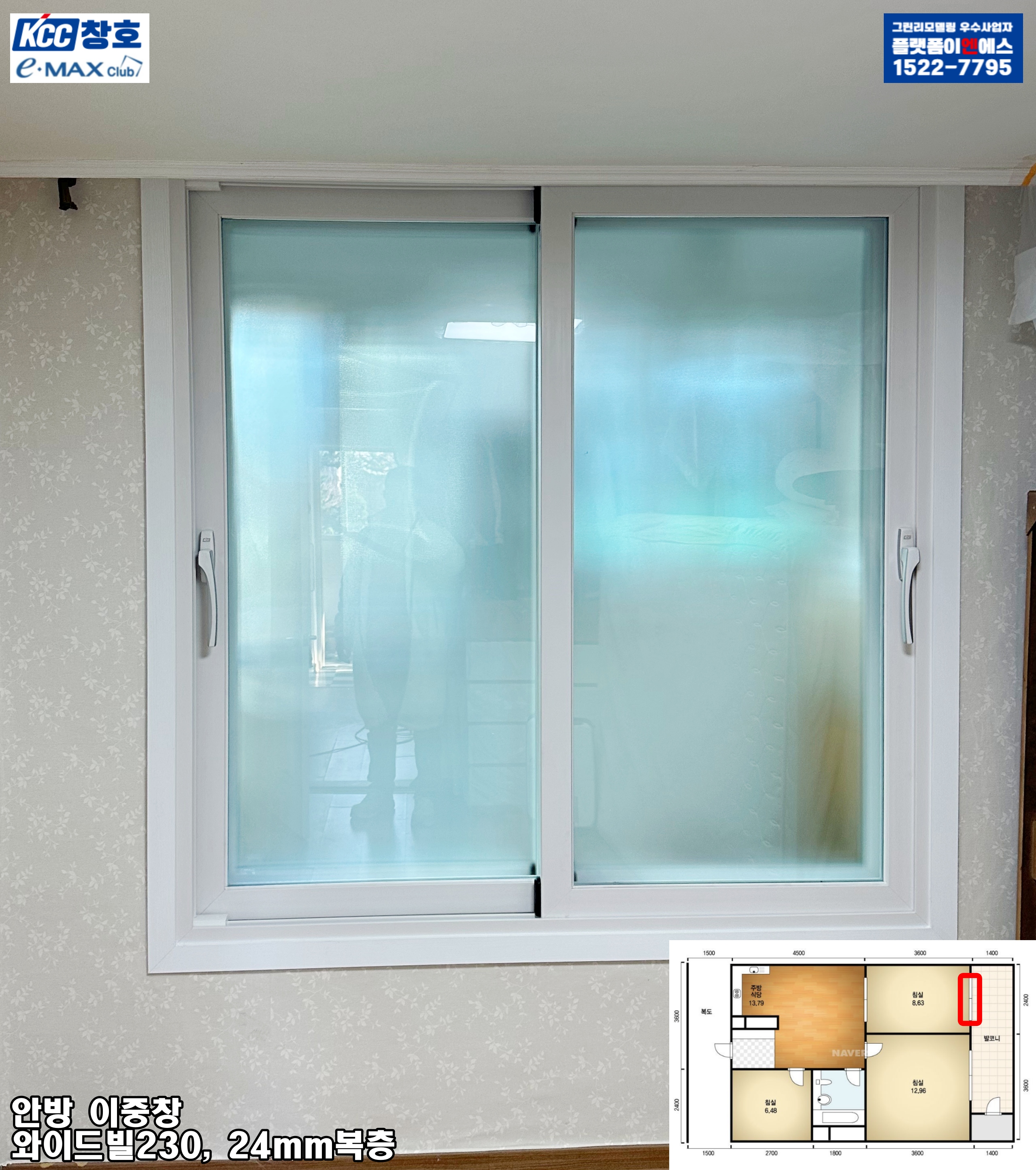 2. 내창 이중창 : 시공제품 와이드빌230, 24mm복층유리