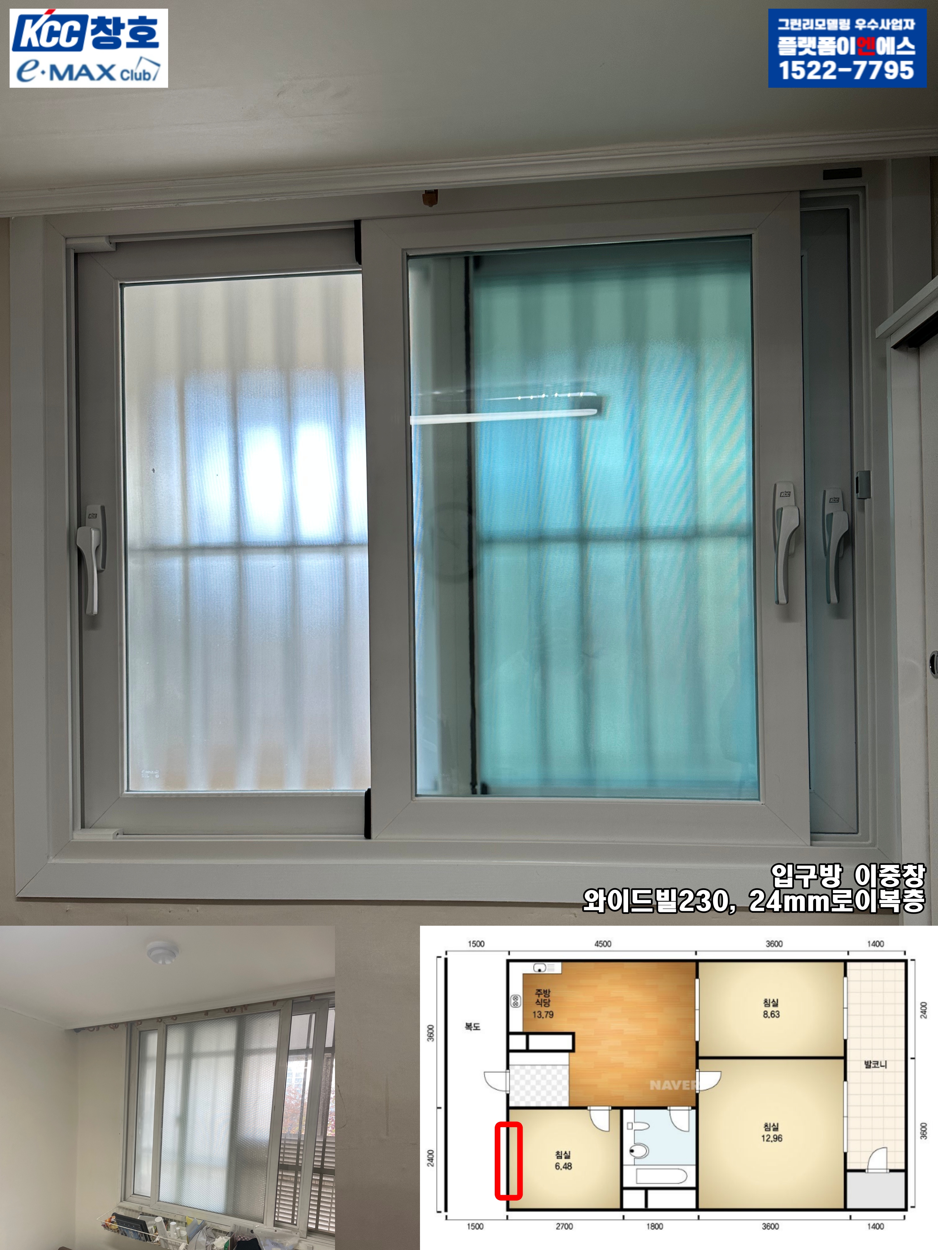 현장은 1996년도에 완공된 20평형의 2bay구조이며 그린리모델링으로 전체창을 교체하신 사례입니다.