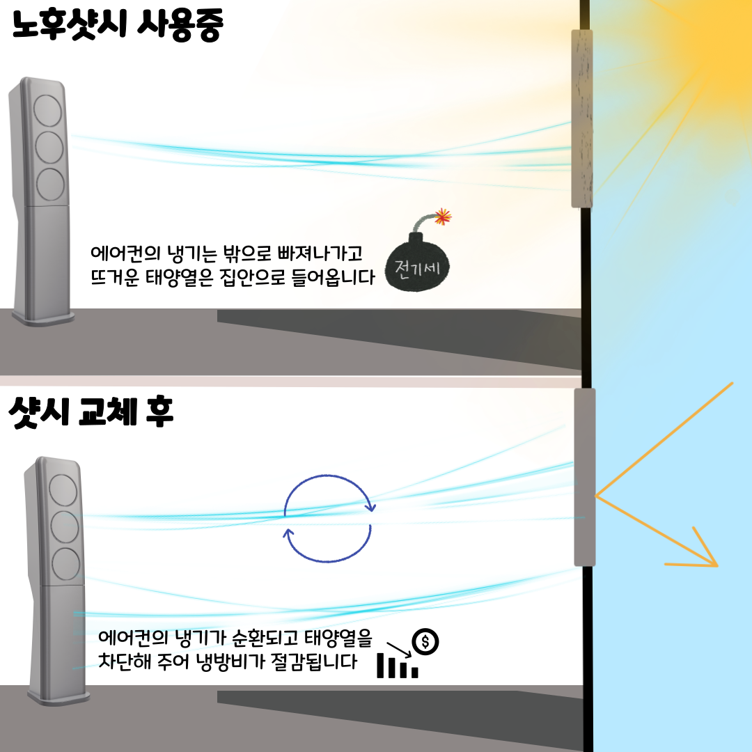 외부창은 단열, 소음차단, 빗물누수등을 차단하는게 가장 중요한 역할을 하기 때문에 전체창 교체가 부담스러운 분들이 시공을 하시는 경우가 많은데요. 겨울이나, 여름등 에너지 소모율이 많은 계절이 그 역할을 톡톡히 한다고 볼 수 있고, 저비용에 고효율을 원하시는경우 가장 적합합니다.