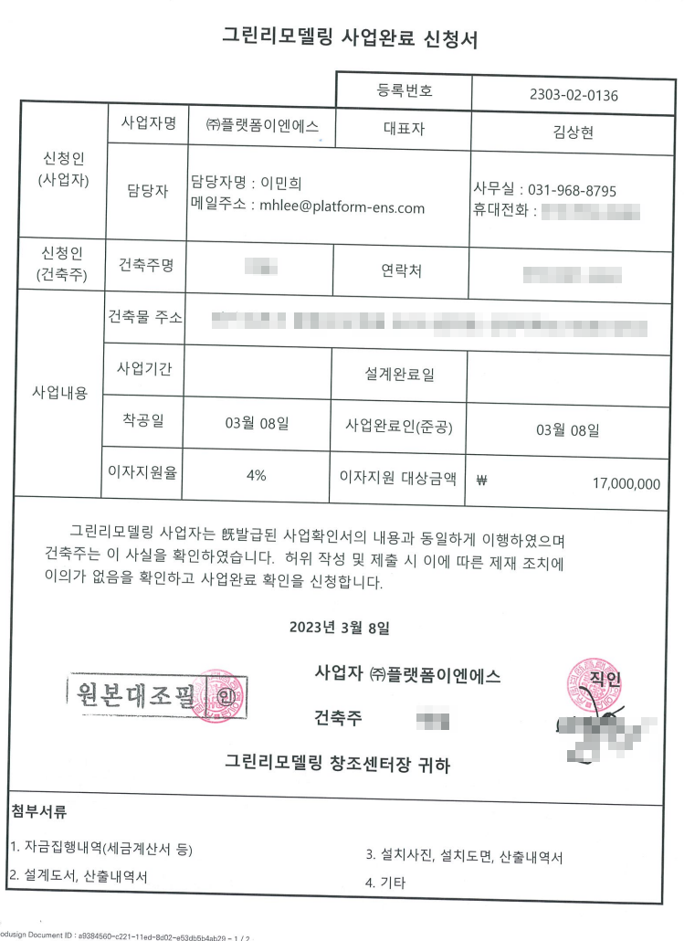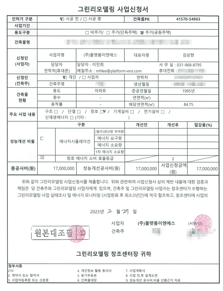 그린리모델링 우수사업자 플랫폼이엔에스입니다.