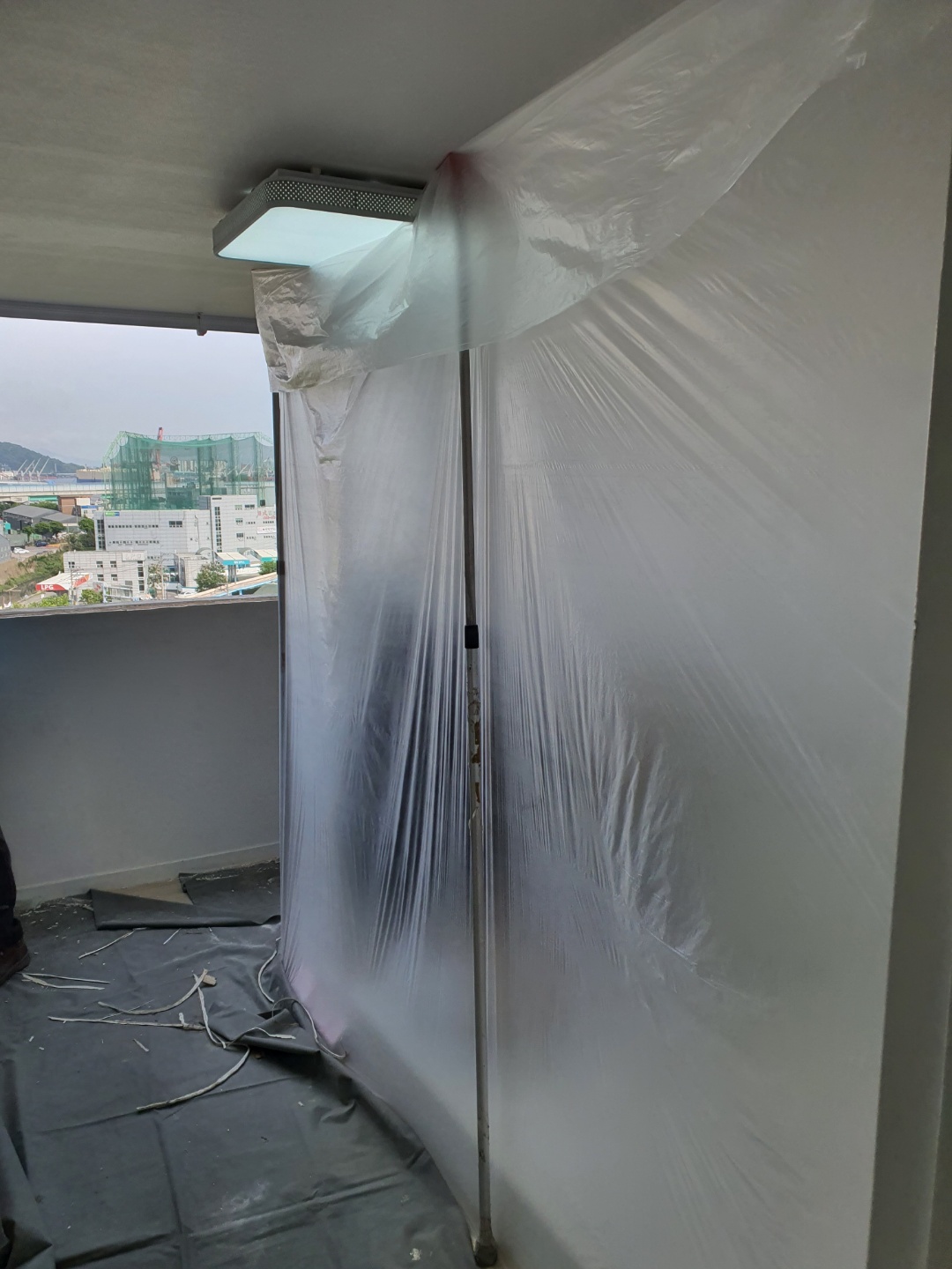 보양작업을 할때는 기둥을 세워 진행을 하게 되는데요. 과거엔 벽면에 테이핑 처리를 하기도 했지만 그렇게 보양을 진행했을경우 벽지손상과 바닥재 손상이 있을 수 있기때문에 시간이 소요되더라도 기둥식 보양작업을 진행하고 있습니다.